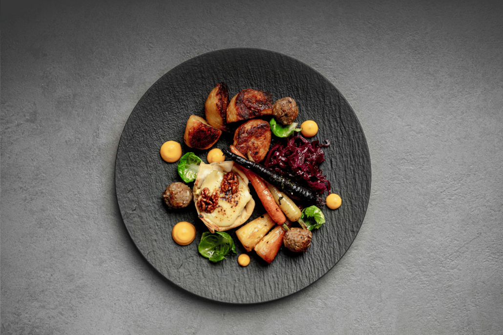 At the heart of the menu is a choice between classic Christmas indulgence and contemporary vegetarian creativity.