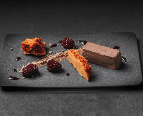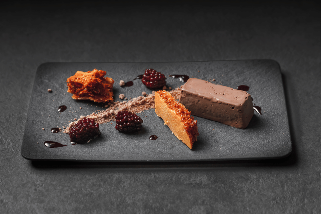 Chocolate & Salted Caramel Terrine with Honeycomb Crackling & Chocolate Soil